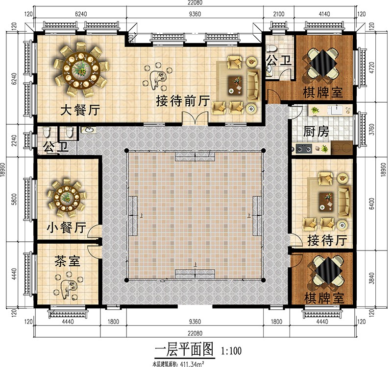 項目名稱:仿徽派二層四合院別墅裝修建筑