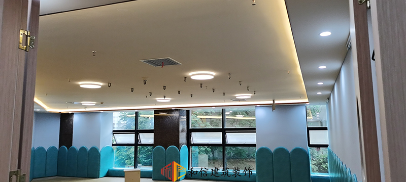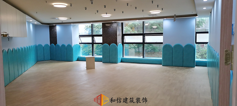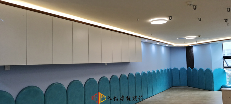 教室設計上,和信建筑采用了水鴨藍的弧形作為墻面裝飾,水鴨藍在色彩心理學中代表著可靠和積極的精神進步,它可以激發我們的靈感,也可以撫慰心靈。